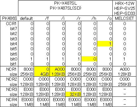 それと今さらメモリマップで気がついたのですが、ハイレゾでの拡張ROM域として普通に使える EC000h-EFFFFh はXAではリザーブとなっています(つまりユーザへの脅かし)。またF0000-F3FFFhはリザーブで未使用となっています(ノーマルモードだとN88BASICの続きが入っているところ)。RLではSYSTEM BIOSの一部のはずです。